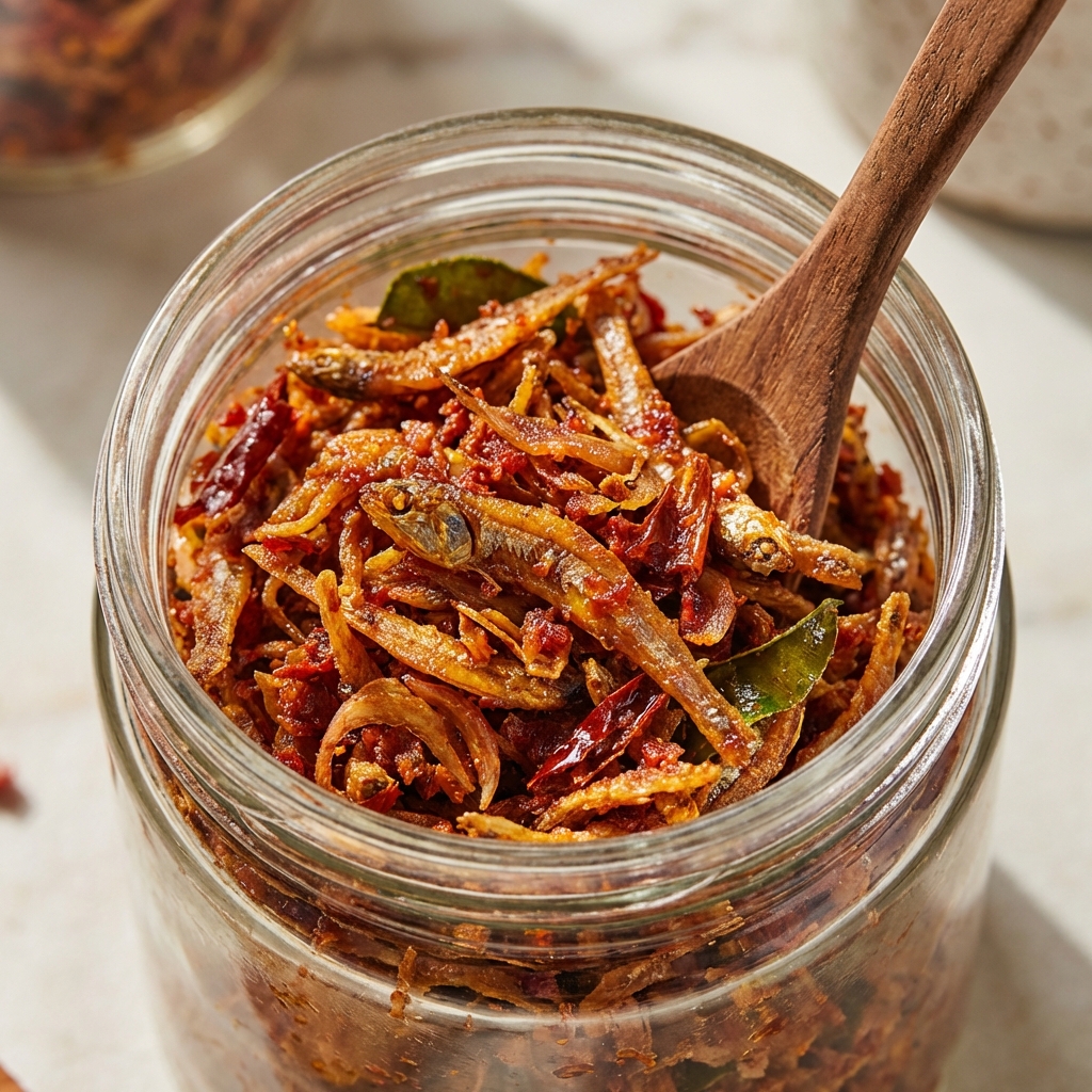 Bilis garing krup krap dengan cili padi pilihan.